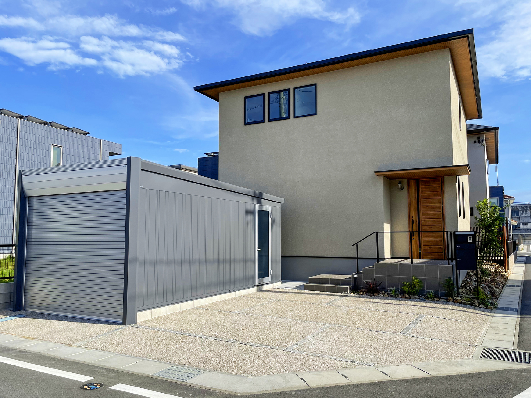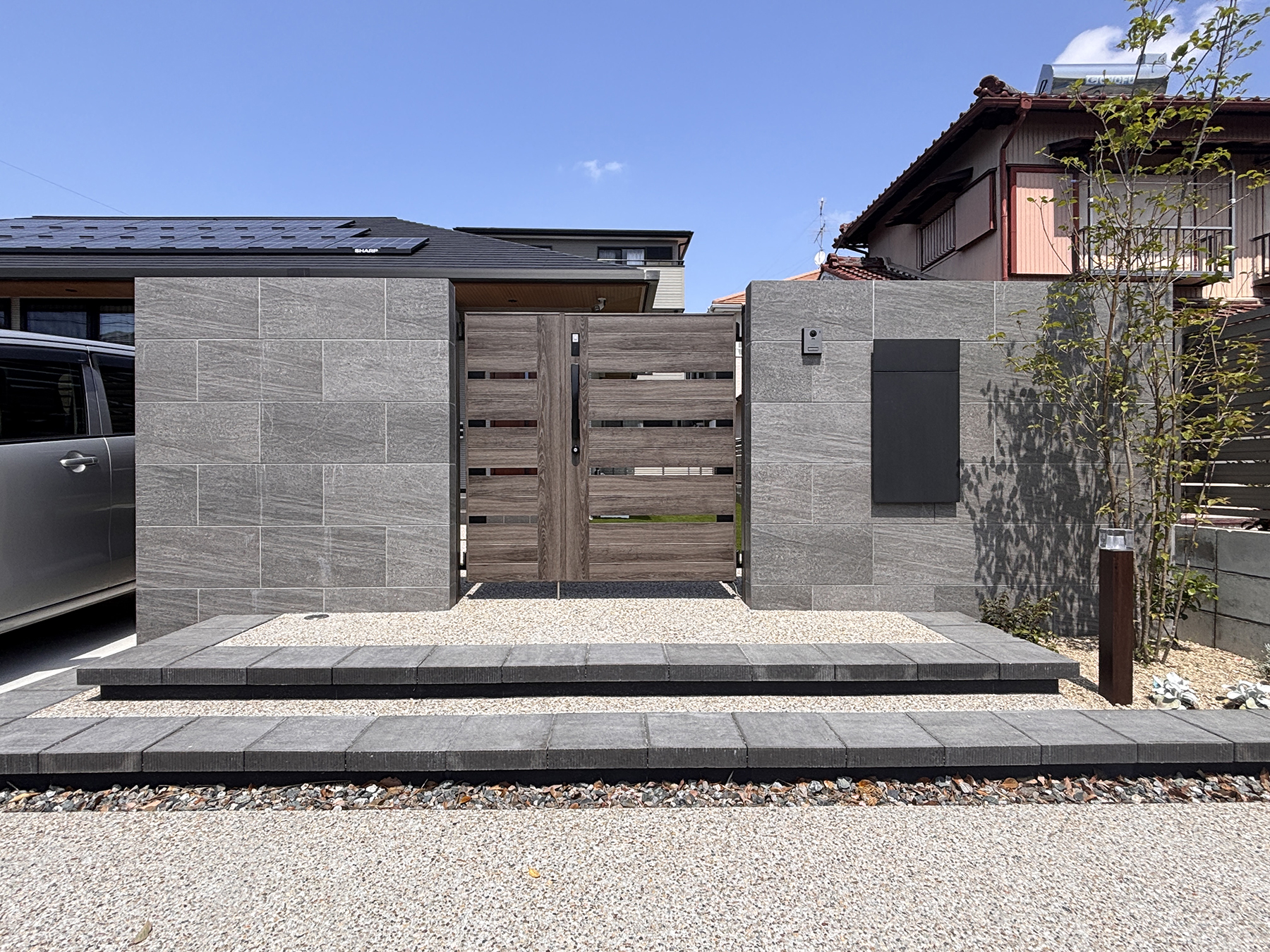 建物と同じタイルを貼った防犯性の高いシャッターゲート