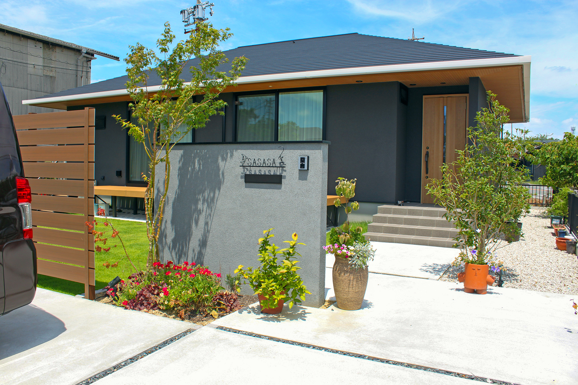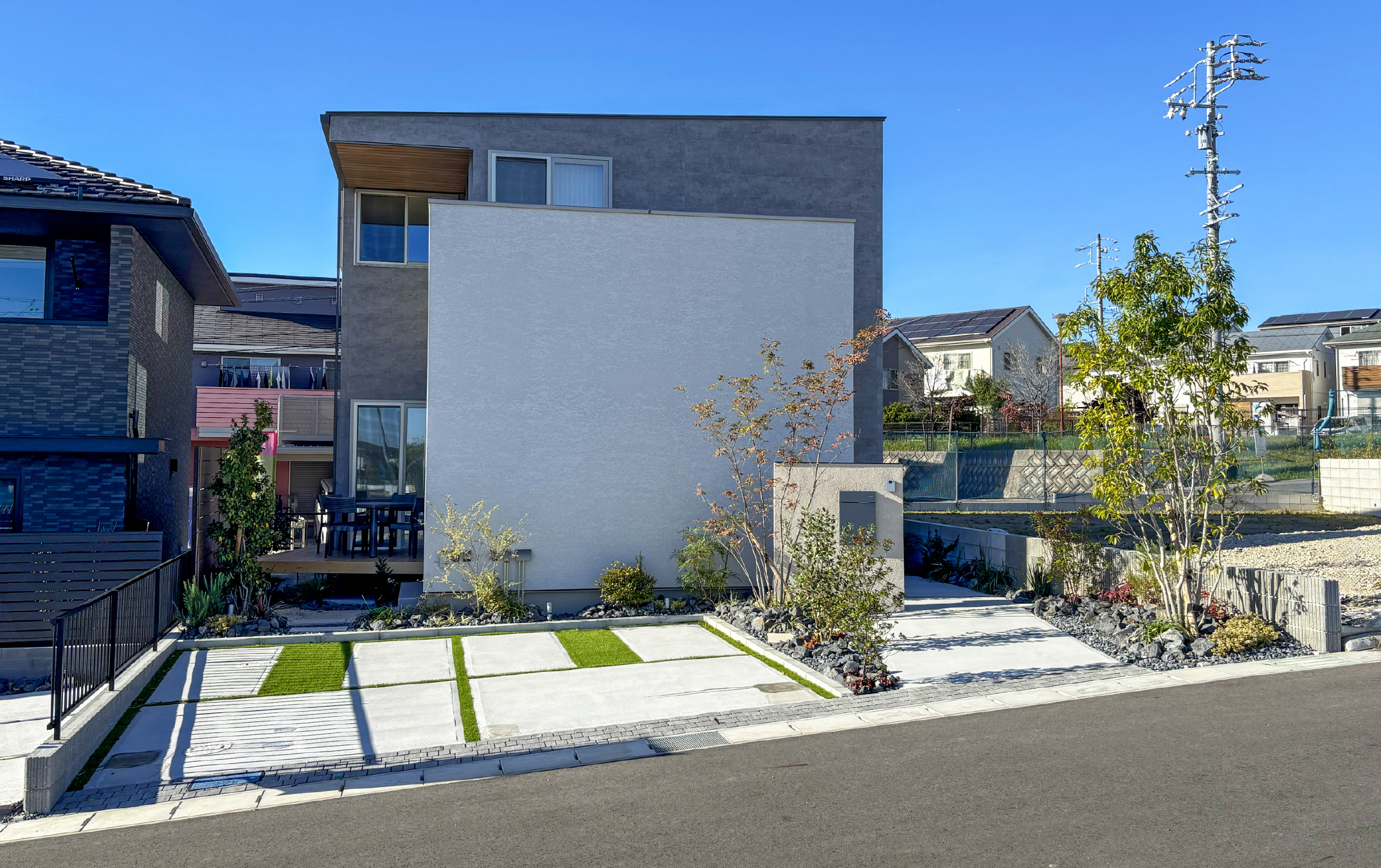 石目柄タイルと拘りの植栽が鮮やかなモダンエクステリア