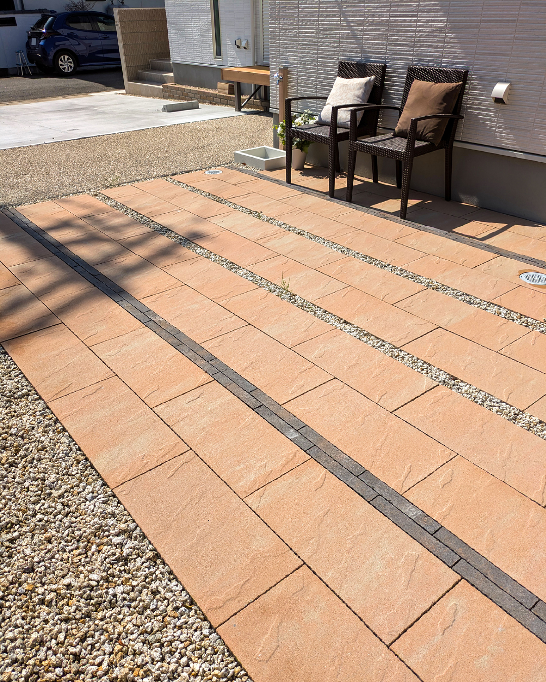 透水性平板を敷き、バーベキューなど多目的に利用できるスペースになっていて、来客時には、駐車場にもなります!