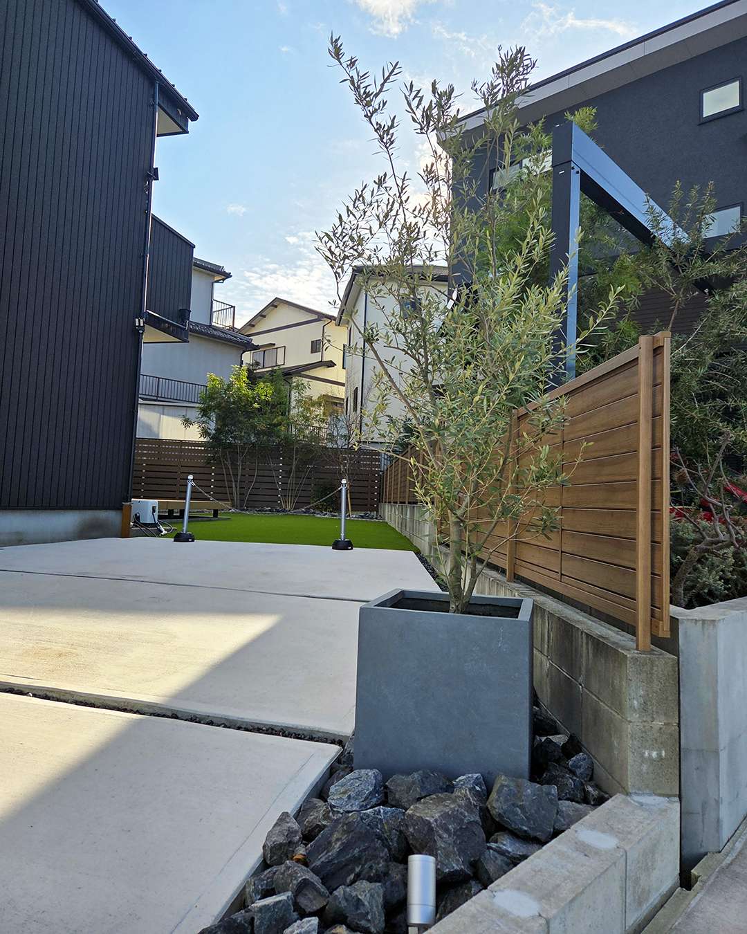 土間コンクリートで快適に。フラットな駐車スペースをつくりました。
