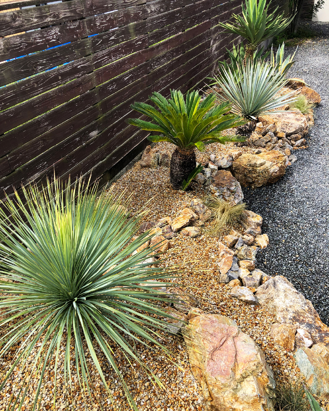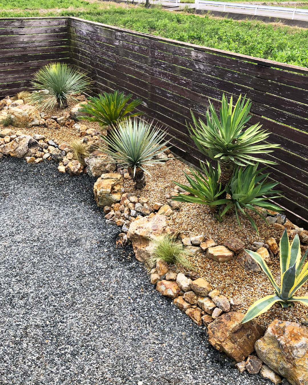 ゴツゴツとした石の起伏と多肉植物が魅せる個性的なDry Garden。