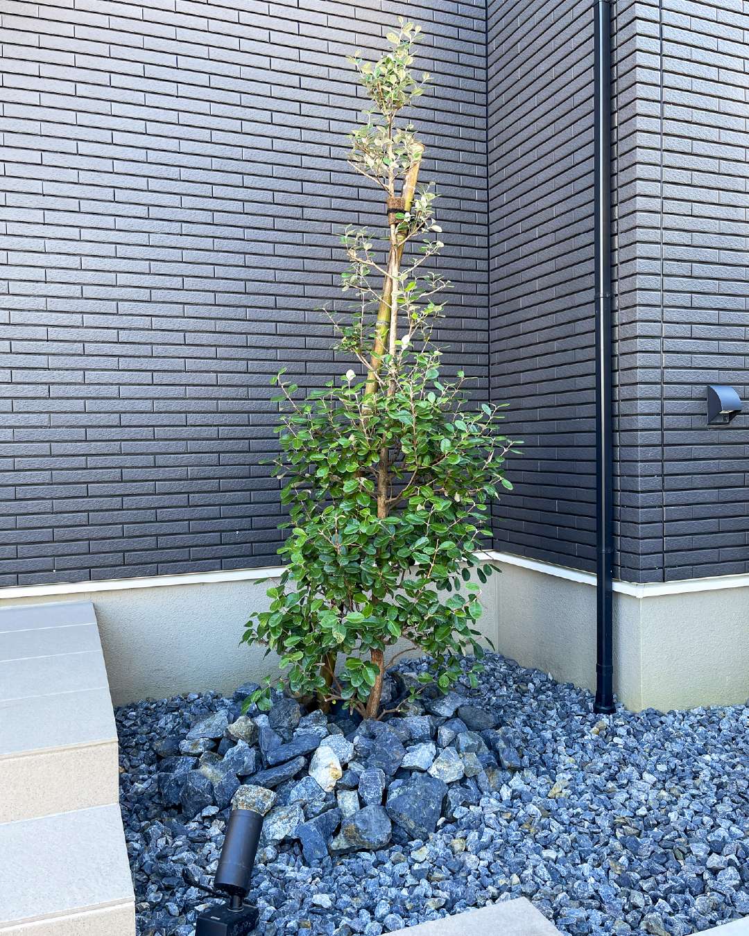 植栽が映える玄関まわりの彩り。植栽:フェイジョア