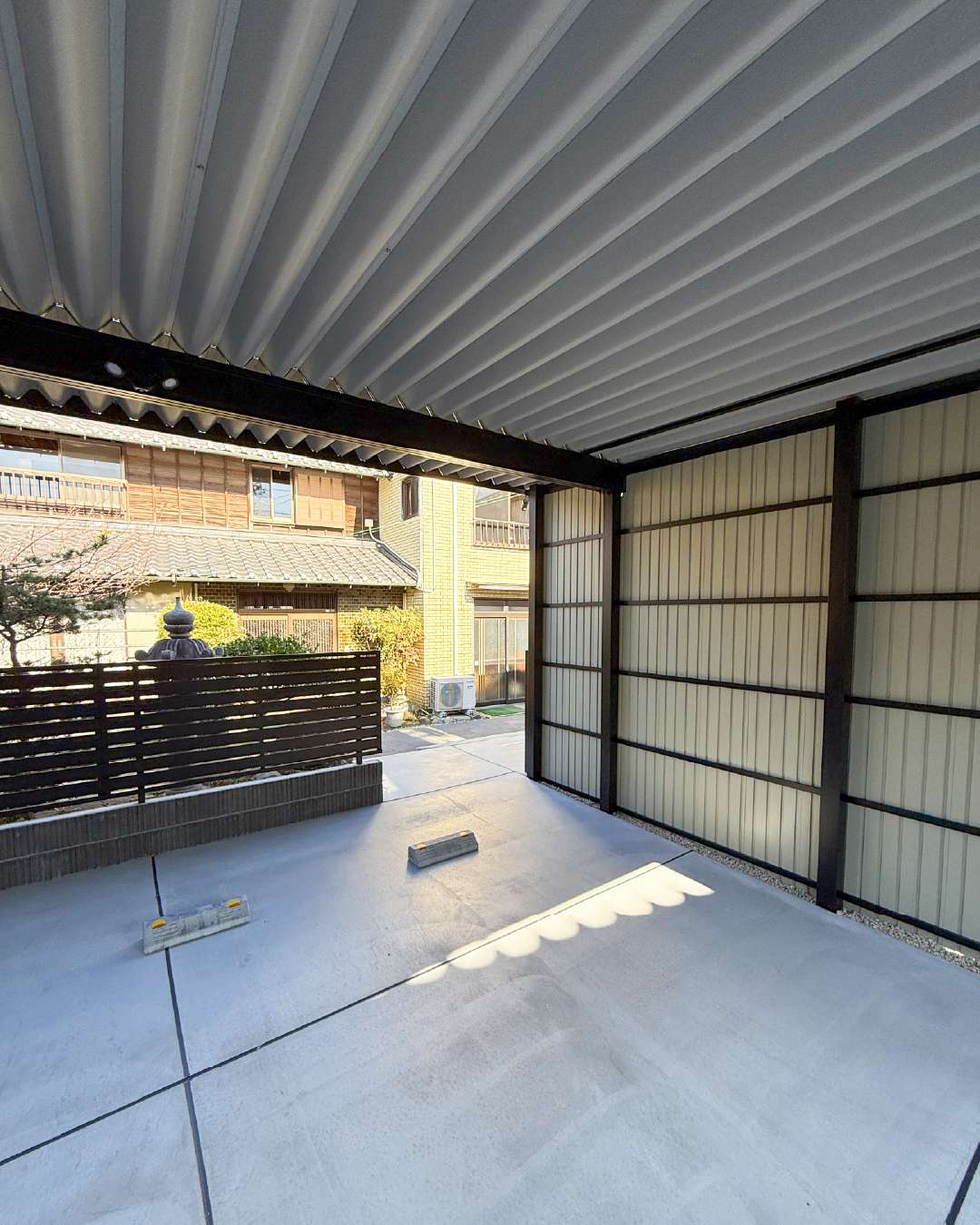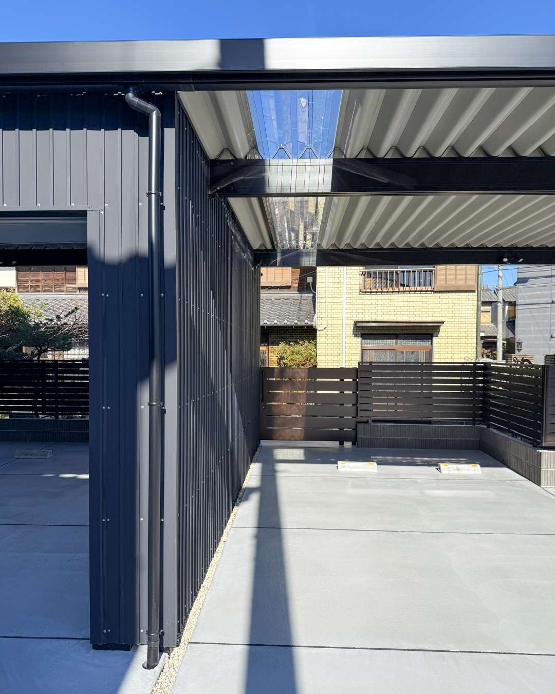 カーポート・ガレージ一体型にする事で柱・屋根を共有し、別々に建てるより低コストで見た目もすっきりします。