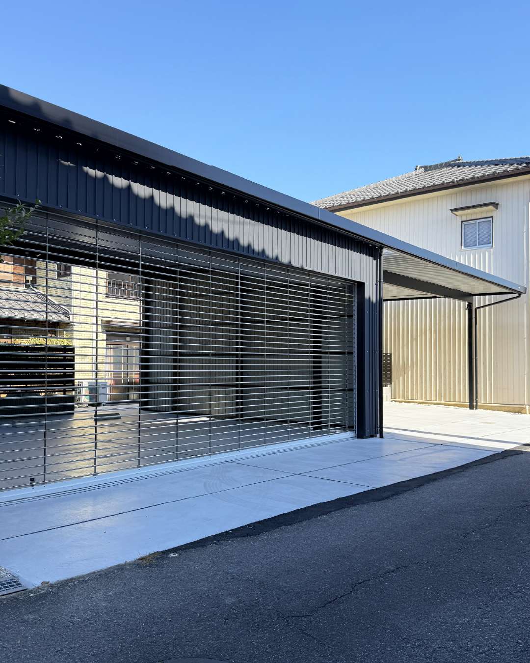 2台用のパイプシャッターで愛車をガード。防犯性を向上させたクローズド設計。近藤工業:フリープランガレージ